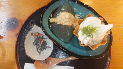 葛もちと葛ソフトクリーム、二つの味が同時に味わえます。