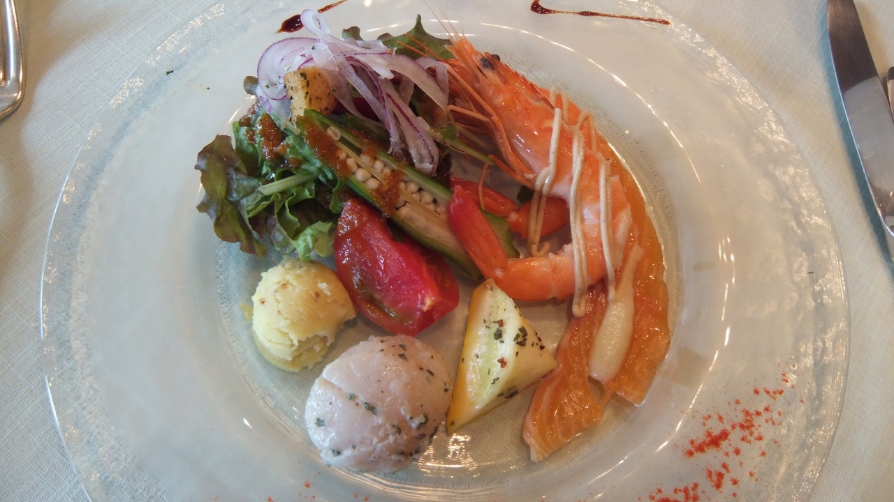 前菜は海鮮を中心とした盛り合わせでサラダ仕立て。