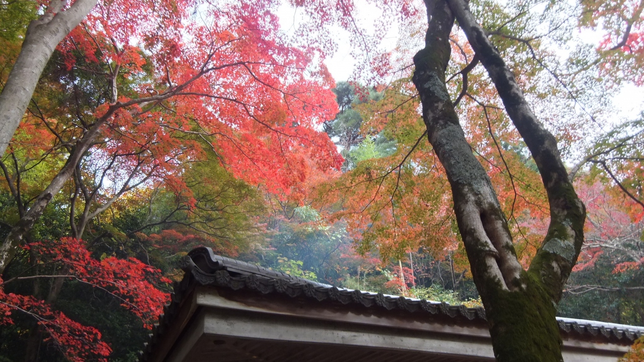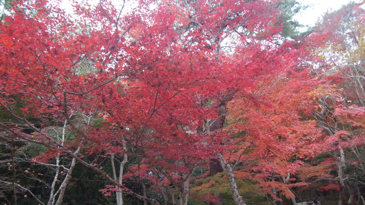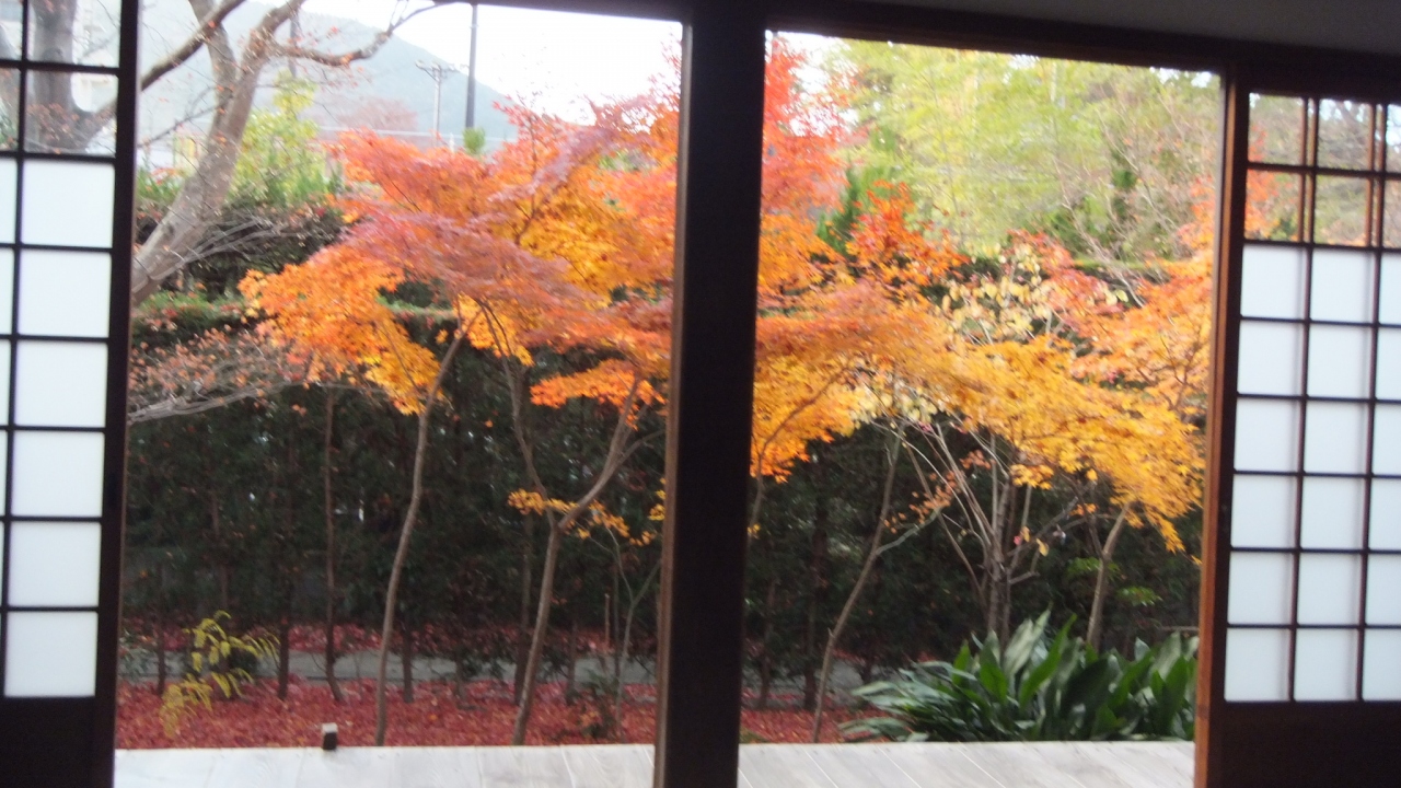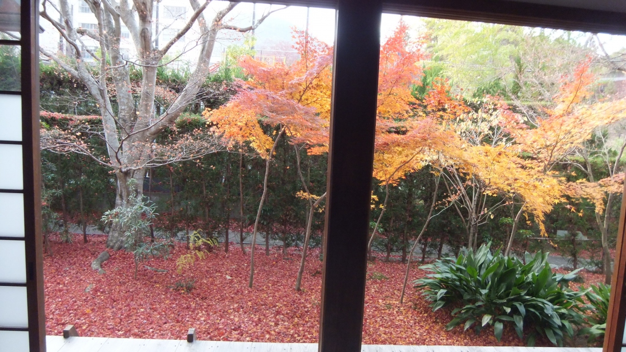落葉した紅葉が庭一面に敷き詰められ、地面は紅に染まっていました。