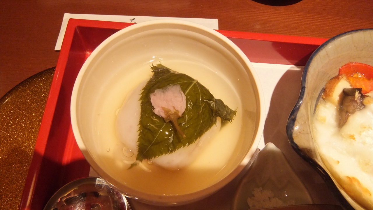 お料理も柚子酒の食前酒から始まって、先付、お刺身、松茸と鱧のお吸い物、鯛の骨蒸し等、お腹いっぱいになり満足です。