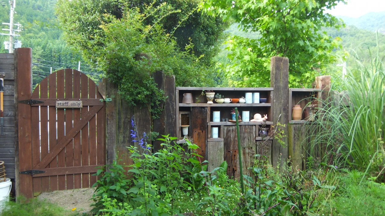 ギャラリーが併設されていて、陶器や硝子製品、皮細工が所狭しと並べられています。