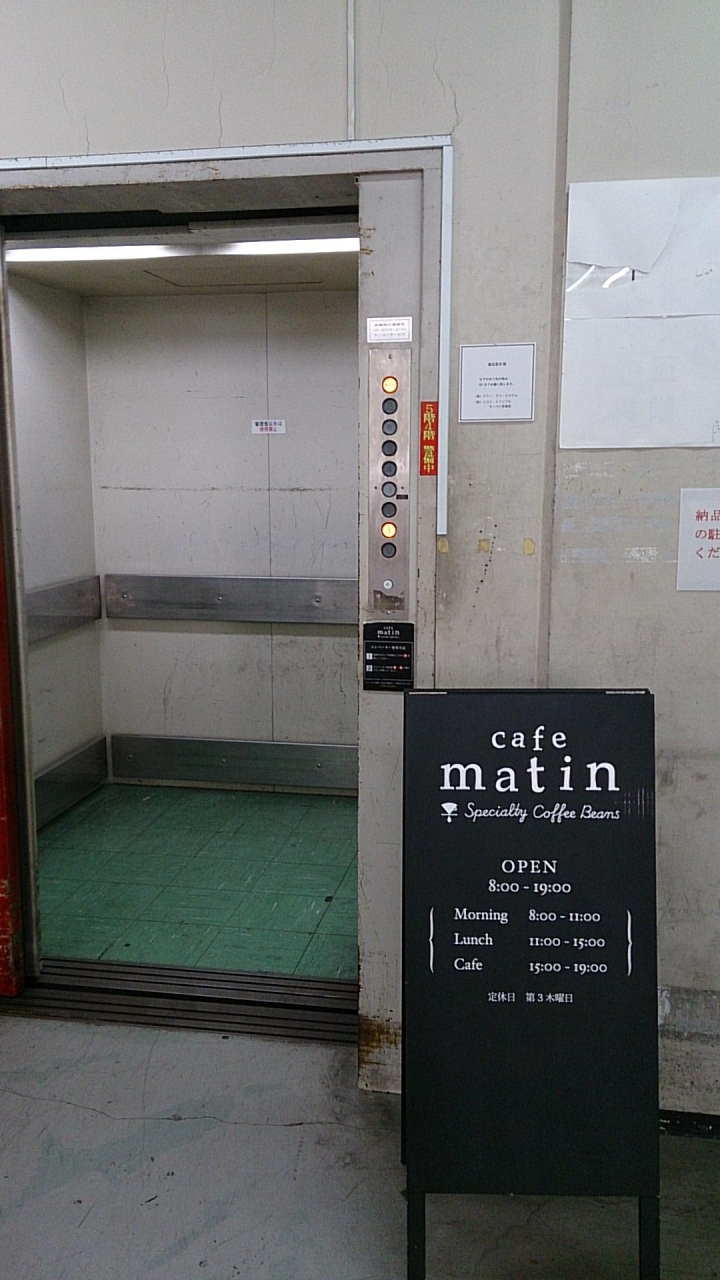 赤い扉の荷物搬送用のエレベーターに乗ってお店に向います♪