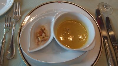 スープはお野菜の甘みたっぷりのカボチャのスープ。