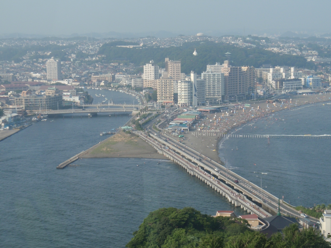 江の島サムエル・コッキング苑内にある展望灯台からの眺めはサイコー!湘南の海を見下ろせます。暑い夏でも風がさわやか。2階のサンセットテラスでは,祭り太鼓の音が聞こえて,にぎわっていました。