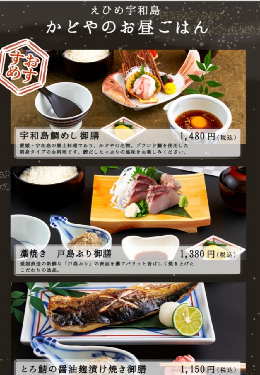松竹梅の3グレードの海鮮丼があり、食べたかったけど品切れだったので、鯛めし御膳にしました。