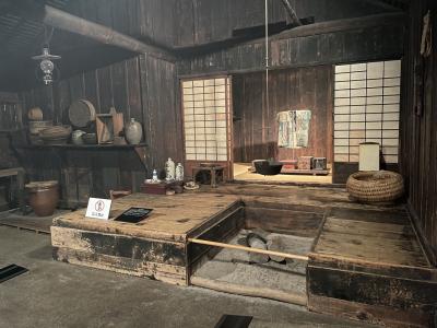 屯田兵屋天井なしの柾葺き屋根、一枚張りの板壁造り。
