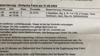 チケットの見方。Wg.6は6両目、PI114、118が座席番号、Fen...