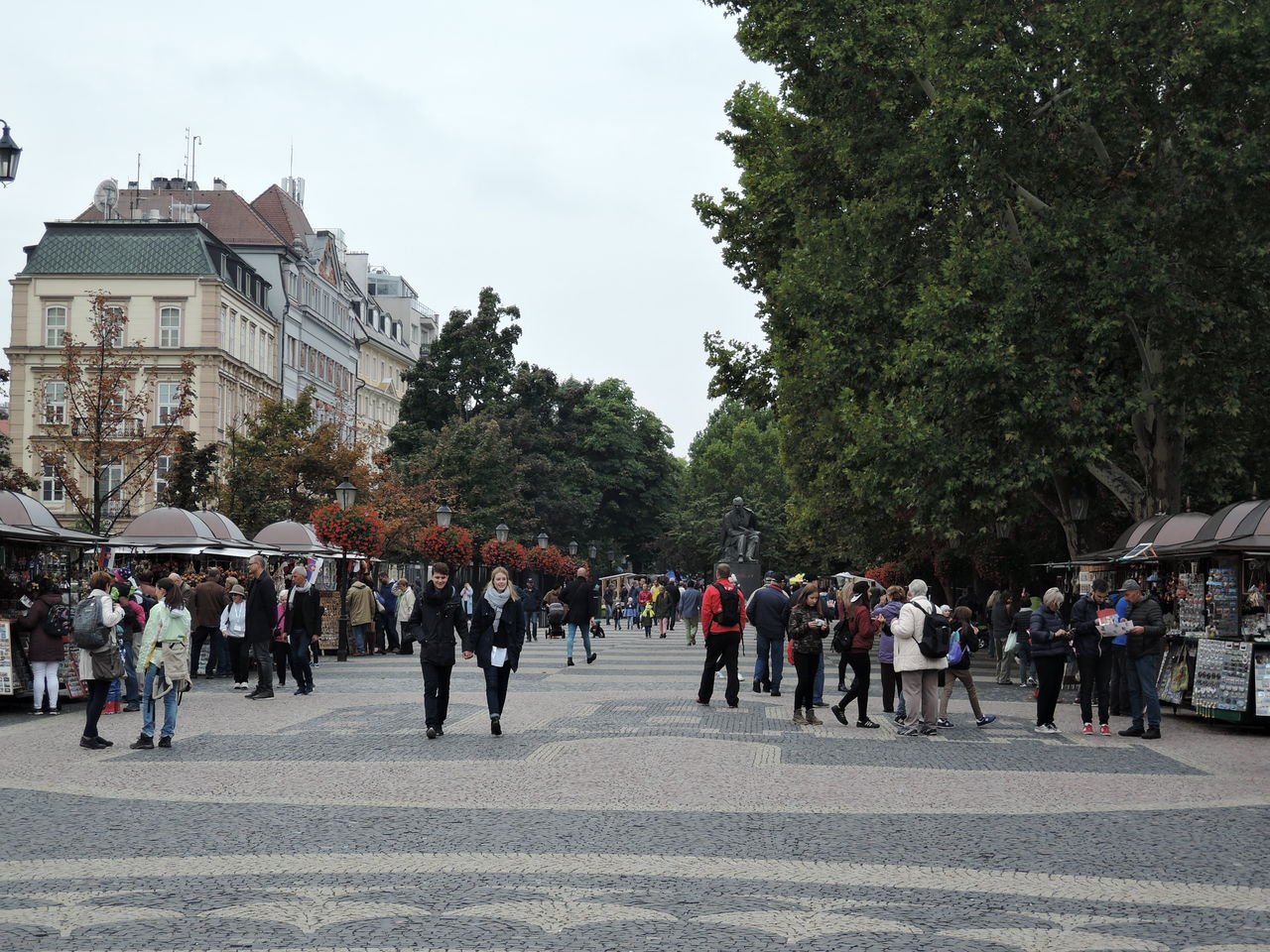 劇場の前はフヴイエズドスラボボ広場。広い遊歩道が続き、両側には可愛い露店が出ています。- 旅行時期