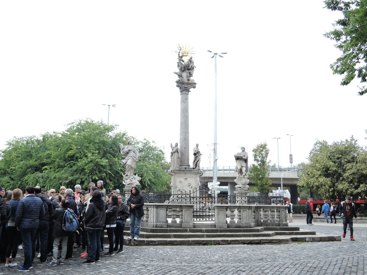 2つ目のアーチをくぐると、聖ヤン・ネポムツキーと天使の像があります。聖ヤン・ネポムツキーはカレル橋からヴルタヴァ川に投げ込まれ、水中に消えた時5つの星が現れ、天から棕櫚の枝を持った天使が舞い降りたという話で有名です。プラチスラバ観光中に5つの星の聖ヤン・ネポムツキー像を何度も見かけることが出来ます。
