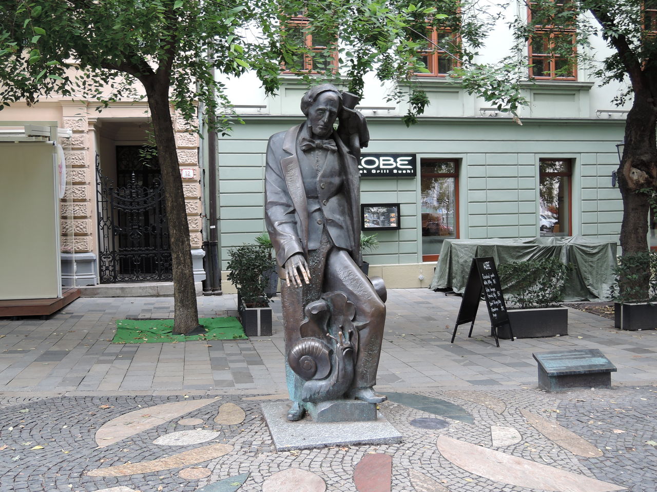 フヴイエズドスラボボ広場は長い遊歩道のようになっていて、噴水や彫刻が一杯、足元にカタツムリがいるアンデルセンの像がありました。皆が撫でるのかアンデルセンの右手とカタツムリの背は金色に輝いていました。- 旅行時期