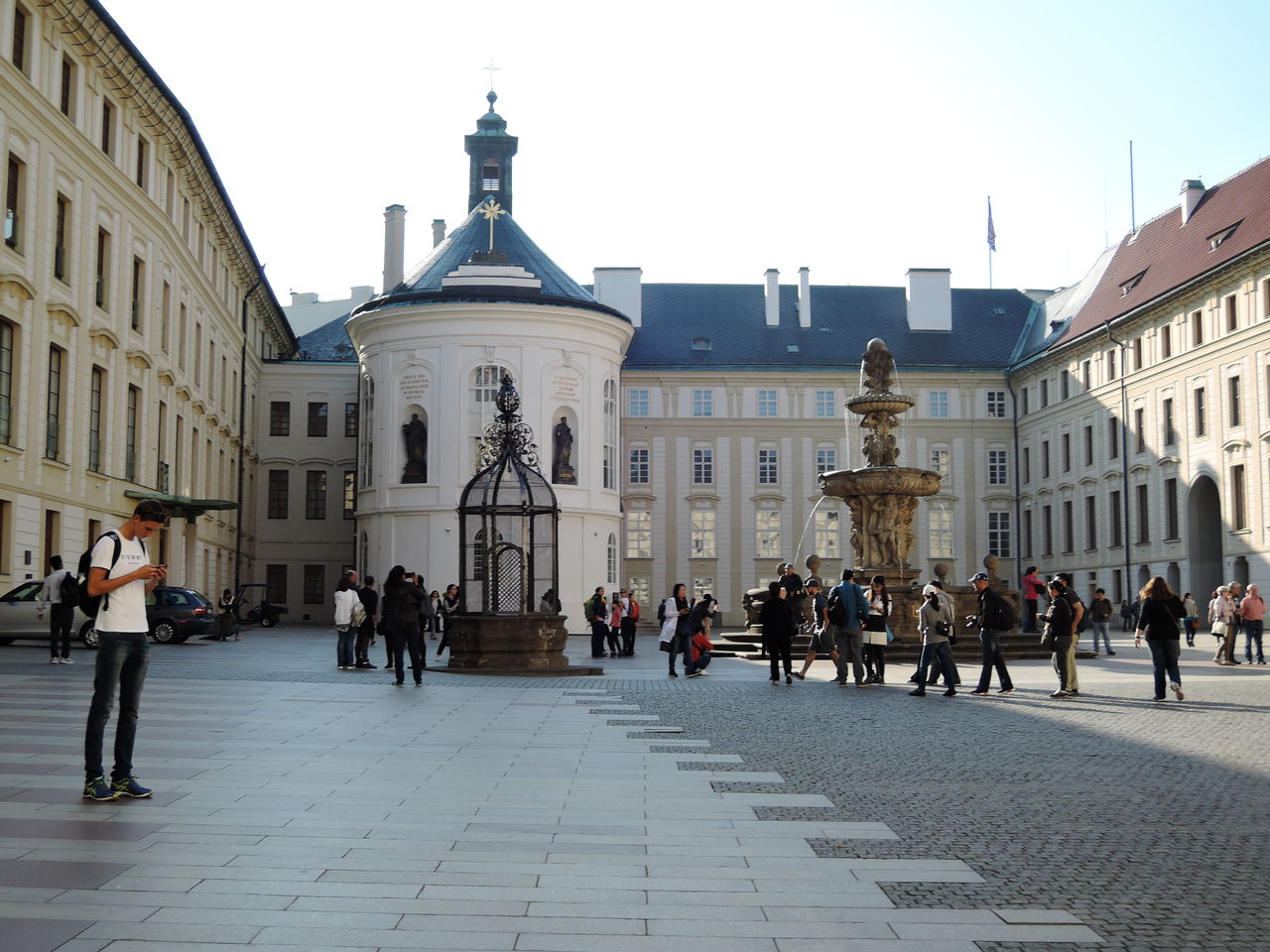 22番のトラムでpražský hrad(プラザ城)で降り、荷物チェクを受けて、北門から入場しました。第2の中庭のインフォメーションで入場券を買います。