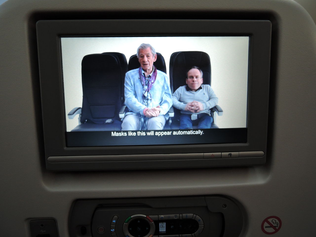 機内安全ビデオが顔を見たことがある有名な俳優さんがコント仕立てで面白く説明してくれます。とても分かり易く楽しくつい見てしまいました。いつもは離陸前に寝てしまうのですが。