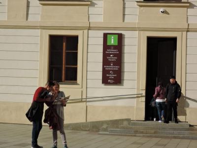 旧市街の東側、角地の歴史を感じさせる建物の1階にあります。緑地にiが目印、隣には大司教宮殿があります。雨が降ったりやんだりの寒い日でしたので、ここでシティマップをもらい、暖まりました。中はとても綺麗、スタッフも親切です。