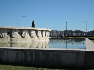 真ん中に大きな池があり、18のポルトガル地区の紋章が飾られた噴水があります。
