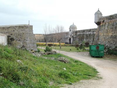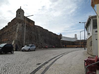 少し先の門が開いていて、中庭に入れました。戻って、要塞沿いに歩いて行くと遊歩道が大西洋沿いに続いています。早春の雨が降ったりやんだりの暗い天気で大西洋は波しぶきも高く荒れていました。