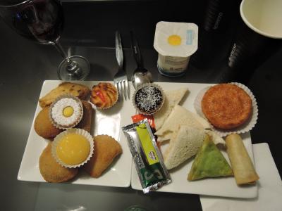 朝起きてすぐアパートメントを出たので、ラウンジで朝食をいただきました。食べ物は軽食が主なものでしたが、品数も多く朝からワイン付きでちょっと贅沢気分を味わえました。- 旅行時期