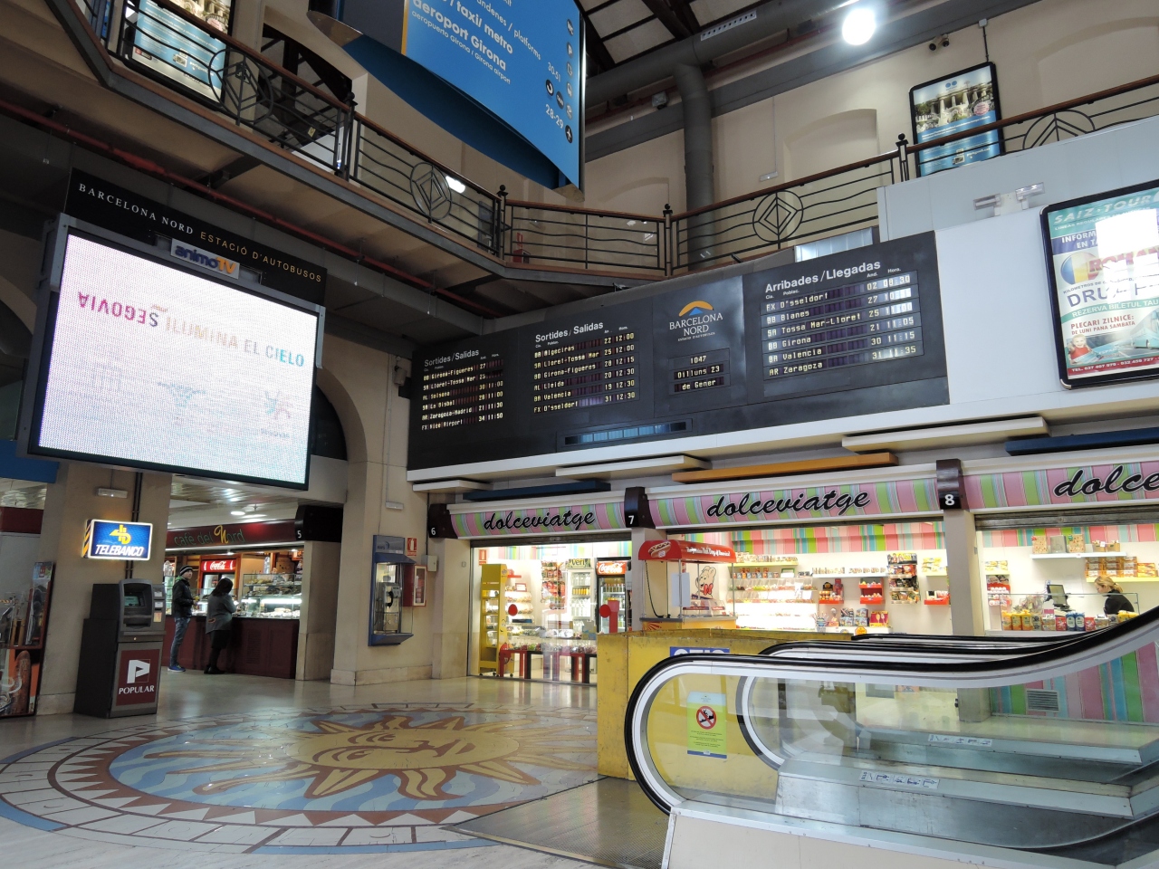 外壁は(バレンシアといえばオレンジの)オレンジをモチーフにしたモザイクタイルの装飾がおしゃれです。中も天井や壁のガラス装飾がとてもきれいです。