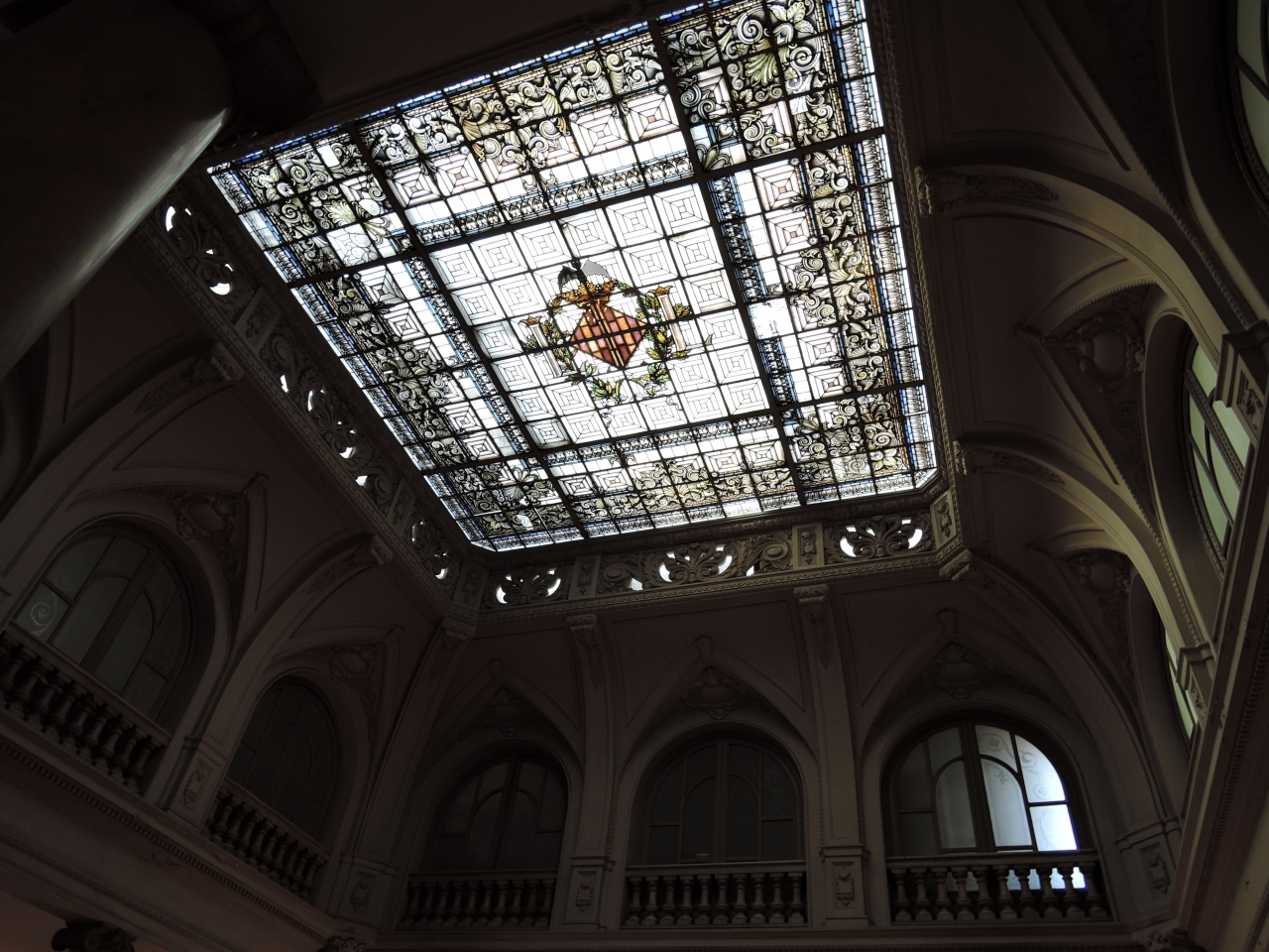 入ってすぐの天井のステンドグラスがバレンシア市の紋章になっています。