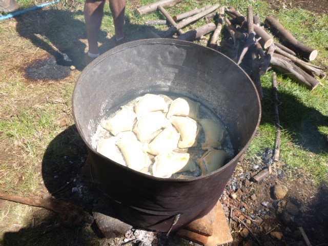 大量の手作りエンパナーダをドラム缶のようなものに並べて、上下から薪を載せて焼いていました。中身は牛肉と玉ねぎと、卵半分とオリーブ。