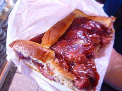 お姉さんのケーキ屋さんでイチゴが沢山溢れそうなケーキ?を買いました。2Sol(74円)。