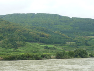 メルクからクレムスまで船に乗り、ドナウ川クルーズ。