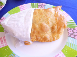 ツナのエンパナーダと魚介のものを頼みました。どちらかがチーズ入りだったと思います。焼いたのではなく、揚げたものでした。