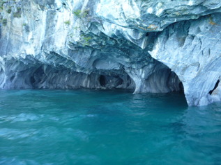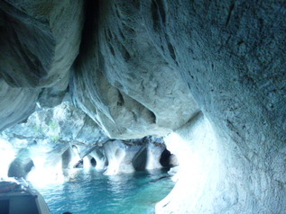 現地のツアーのボートでマーブルケーブまで行きます。一人5000CLP(2500円)。