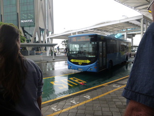 バス乗り場の案内を探すが空港の建物内では見つからず、ウロウロ。