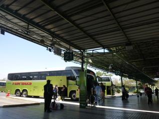 空港からはバスで市内へ。空港の出口を出ると青と緑の二種類のバスが並んでいました。