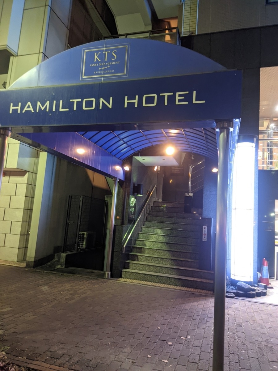 名鉄名古屋駅から歩いて15分程のところにあるホテルです。1階にブルーの屋根があるので分かり易いです。