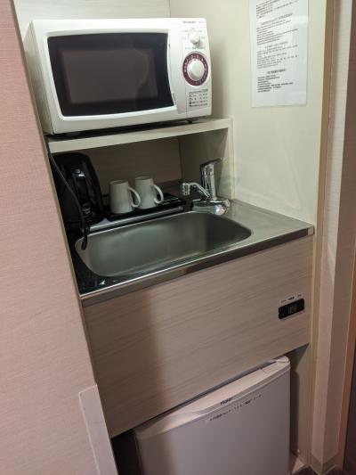 禁煙ダブルルームダブルの清潔な部屋でした。入口近くに流しと水道・電子レンジ・ポット・冷蔵庫があり、お茶を沸かすのに便利でした。- 旅行時期