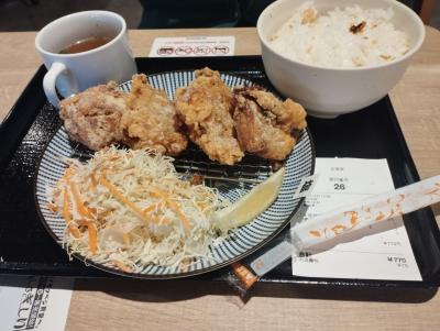 唐揚げの鉄人で大盛り唐揚げ定食 770円 揚げたて大きな唐揚げを満喫しました。- 旅行時期
