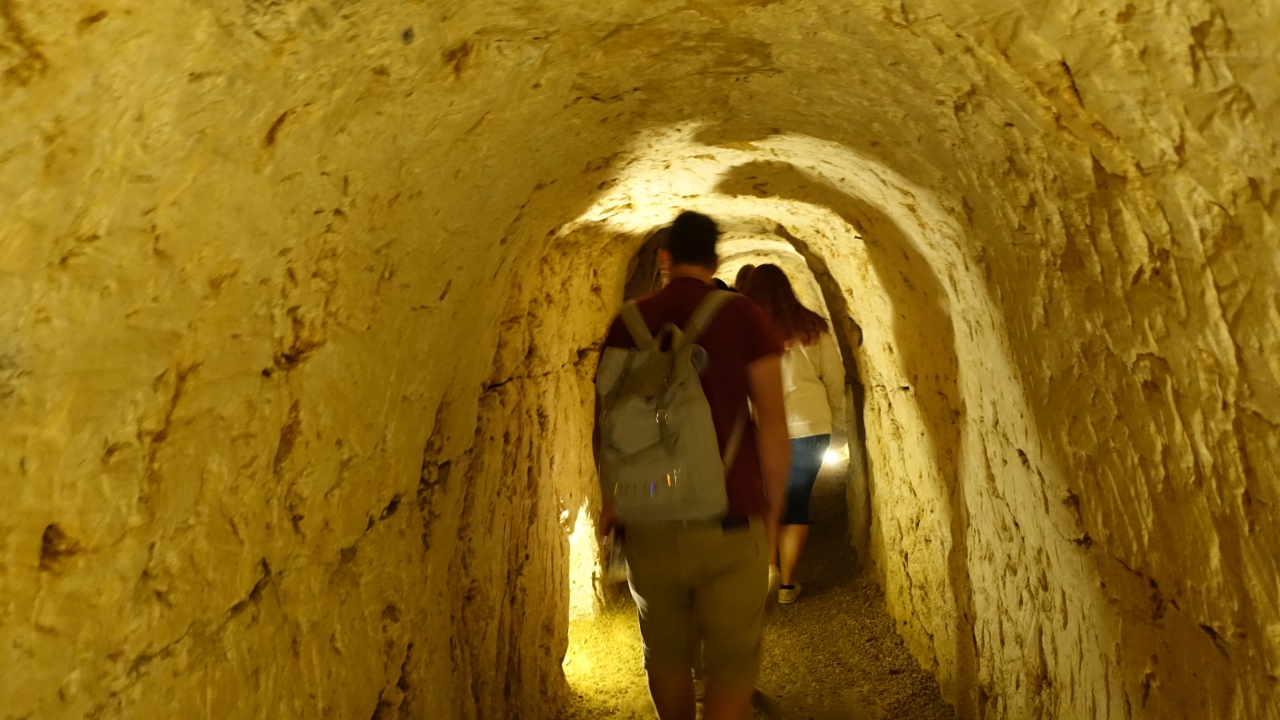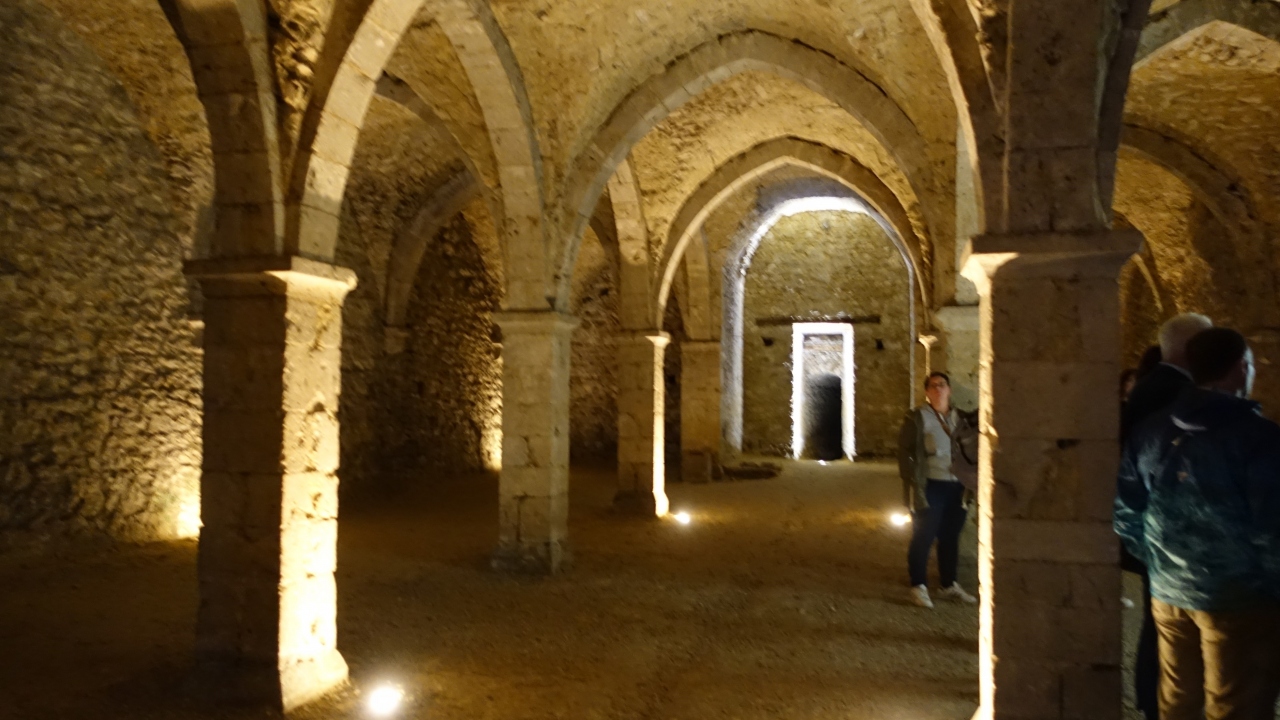 プロヴァンには元採石跡の地下道がいくつもあり、その一部が施療院として使われていた。地下に下りるとアーチのある大広間があり、ここからアリの巣のようにトンネルが伸びている。ここで貧しい病人が収容され治療を受けていたらしいが、地下の狭く薄暗い穴倉に収容されたら治る病も治らなかったのでは。