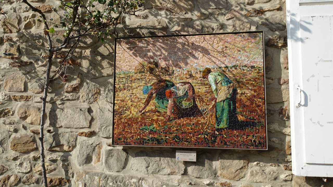 バルビゾンはフォンテーヌブロー宮殿から北西に12km行ったフォンテーヌブローの森の外れにある小さな農村。19世紀前半にミレー、ルソー、コローといった風景画家が移り住み、周囲の風景とそこで働く農民の姿を描き、彼らはバルビゾン派と呼ばれた。村やその周りには彼らが描いた畑や森、家並みが当時のままの形で残っている。村を歩いているとあちこちにバルビゾン派の画家が描いた作品がモザイク画として展示されていて、村全体がさながら野外美術館といった感じ。