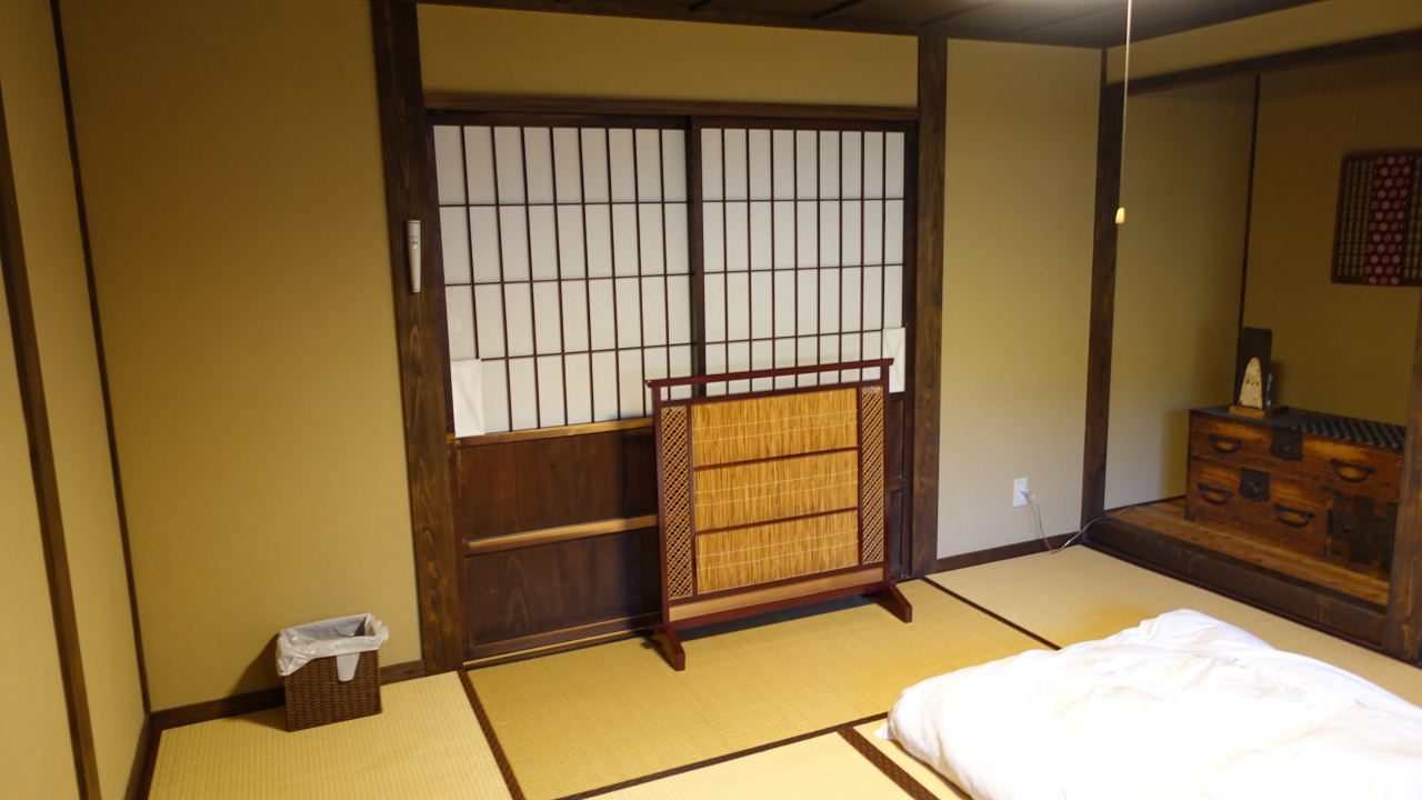 客室は畳敷きの個室2つと2段ベッドが並ぶドミトリー2つ。風呂は別棟にシャワー室がある。食事の提供はないが設備の整ったキッチンがあり自炊も出来る。街中にはいろんなタイプの食事処があるので不自由はない。外国人の旅行者に人気なようである。管理人は近所に住む女性の方で、自宅から必要な時ここにきて宿泊客の便宜を図られている。とても親切な方だった。- 旅行時期