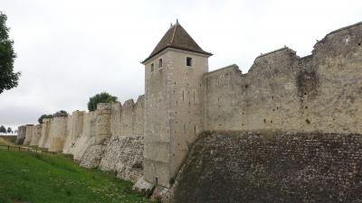 中世のプロヴァンは5kmの城壁で囲まれていて門が10か所あった。現在残っているのはサン・ジャン門のある西側の1.2kmだけ。城門の部分は厚さ10m近くあり、門から連なる城壁の高さは25m。随所に見張り塔や狭間があり、城壁の上を歩くことが出来る。城壁の上から見ると内側に赤い屋根の建物、外側には一面の小麦畑が見える。中世騎士のアトラクションも城壁近くで行われる。- 旅行時期