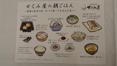 小浜市内では規模が大きい老舗ホテルでツアー客もよく利用するようだ。部屋の窓から小浜港を望むことが出来た。浴室は大、小と2つの浴場があり泉質はナトリウムー塩化物泉。源泉温度33℃なので加温している。朝食は和食のセットメニューで、特産の鯖の塩焼きを始め品数が豊富。イラスト付きの品書きがわかりやすかった。- 旅行時期