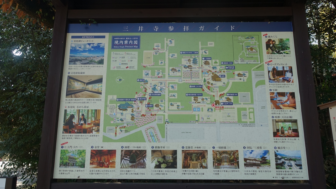 三井寺は丘を含む広い境内には伽藍や堂宇が建ち並び、観月舞台のある展望台からは琵琶湖と大津の街並みを展望できる。訪れた時は美しい紅葉だったが、春の桜も見事らしい。- 旅行時期