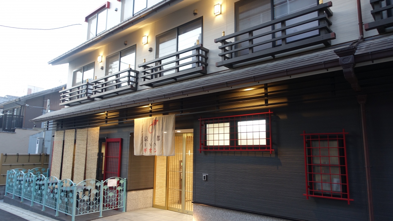 安井金比羅宮の奥の見栄えのしない路地に建つ小さなホテル。しかし建仁寺や花見小路は徒歩数分、清水寺や高台寺なども徒歩圏内と立地は最高。