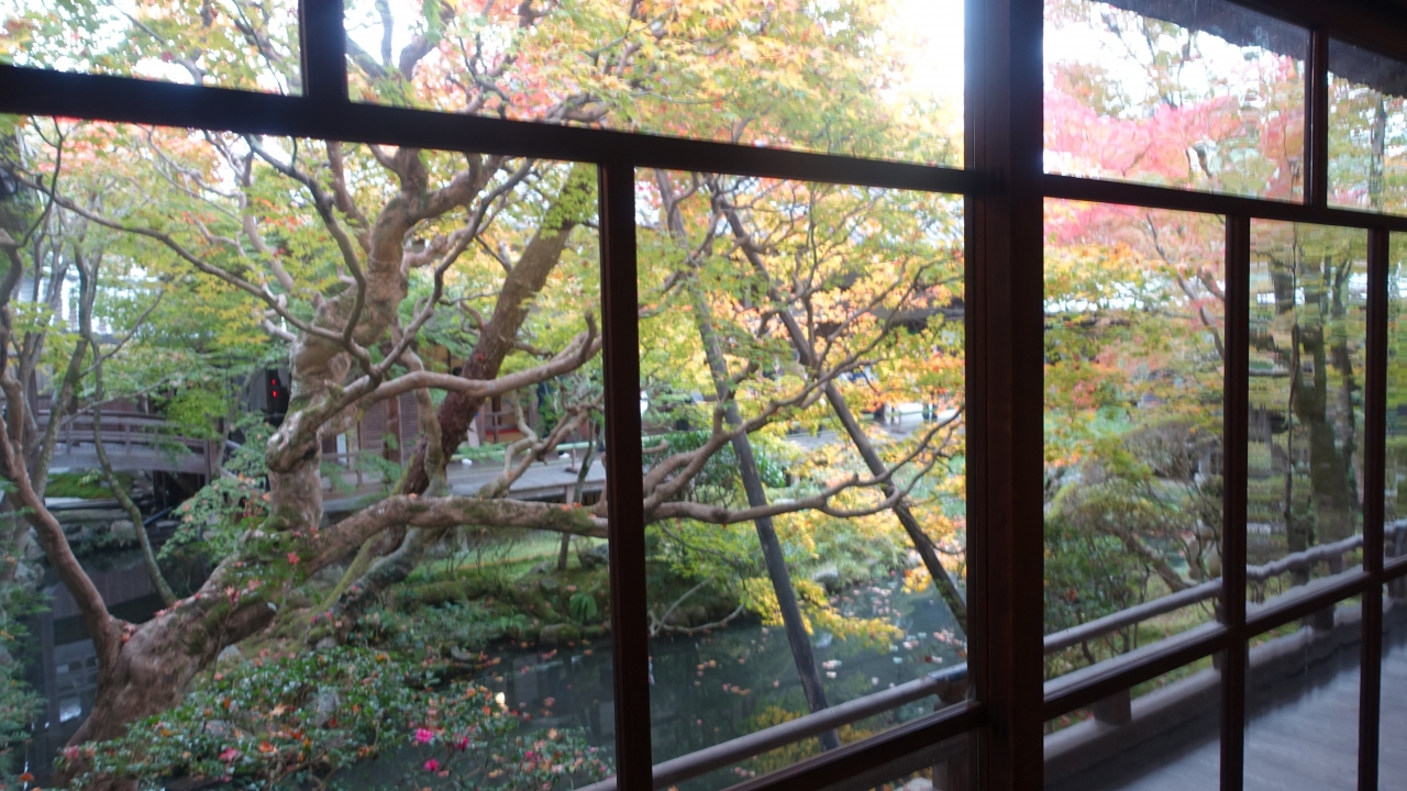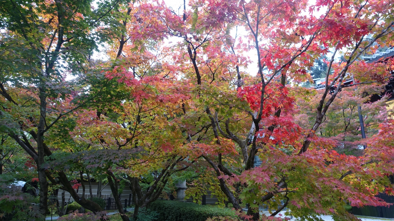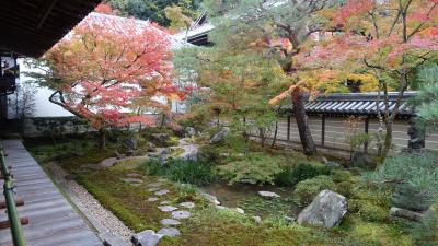 方丈には長谷川等伯の襖絵を始め大正から現代にかけて活躍した画家たちの襖絵がずらりと並び見ごたえがある。方丈から眺める南庭は木々に岩と砂を配した枯山水庭園で紅葉と常緑樹のコントラストが美しい。坪庭を見ながら奥に進むと平安時代の和歌を掲げた小部屋「歌仙堂がある。その奥に伏見城から移築した北庭がある。池泉回遊式の枯山水庭園でライトアップで闇に浮かび上がる石組みの上の紅葉が見事だった。- 旅行時期