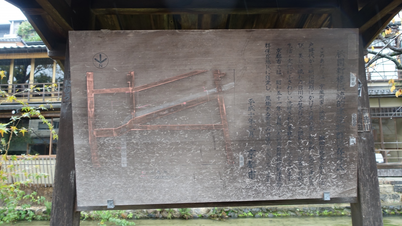 祇園六町のうち新橋通を中心にした東西160m、南北100mの範囲が祇園新橋として重伝建に指定されている。この一帯は花街「祇園甲部」に含まれ、江戸時代末期から明治時代初期にかけての質の高い洗練された茶屋様式の町家が整然と建ち並んでいる。