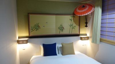 客室は展望はないが古都・京都の文化を感じるエレガントな和の意匠。アメニティは受付横に置かれたものを部屋に持って行く。レストランはないが近くに食事処が多く不便さはない。- 旅行時期