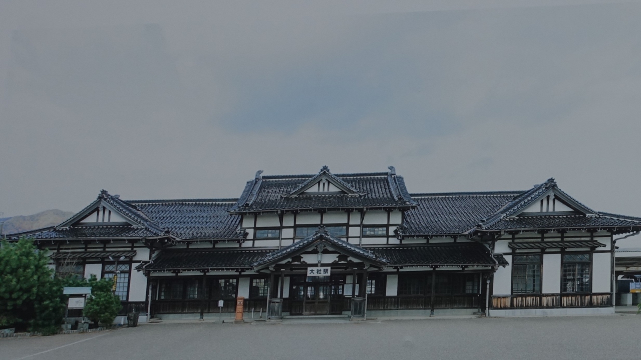 日本には重要文化財に指定された駅舎がいくつかある。東京駅や門司港駅が洋風(一部に和洋折衷)建築なのに対し、旧大社駅は黒い屋根瓦に漆喰の白壁という純和風の木造建築である。訪れた時は2021年2月から始まった5年計画の保存修理中で覆いが掛かり見学できなかったが、国の重要文化財、近代化産業遺産、日本の建築200選にも指定された駅舎の修理完成が待たれる。