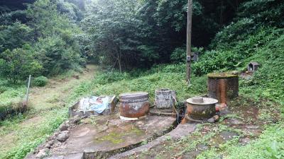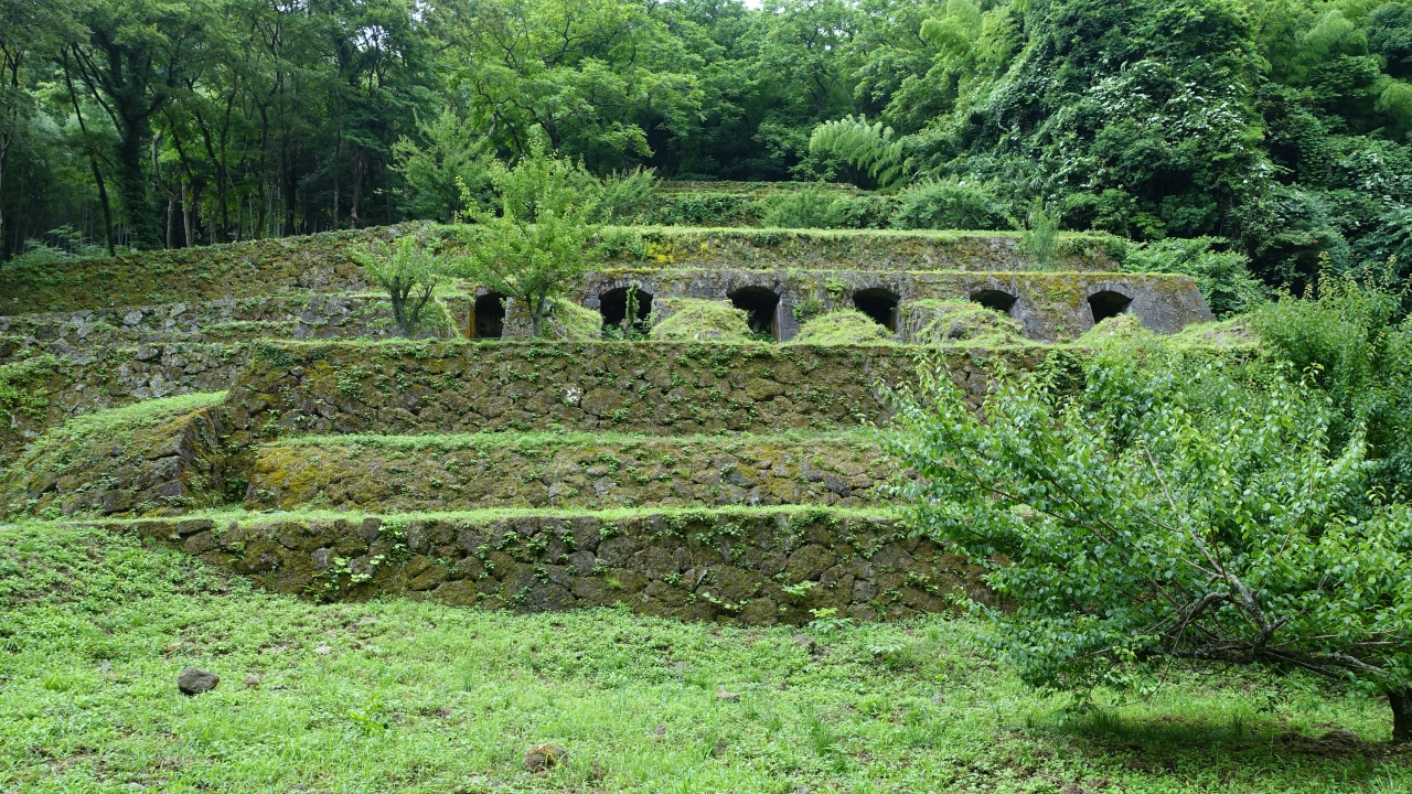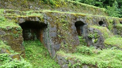 銀山街道から銀山川を渡って山側を少し歩くと清水谷製錬所跡がある。明治19年に既に休眠状態だった石見銀山を、大阪の藤田組が再開発に着手した。多額の投資を行いダイナマイトを使用するなど近代的な採掘設備と製錬方法を導入して、明治28年に清水谷に新しい製錬所を開設した。しかし銀鉱床はすでに枯渇しており、清水谷製錬所はわずか1年半の操業で閉鎖。その後は放置され、今では草木の中に僅かに基礎部分が残っている。黒々と口を開けた基礎部分は砲塁跡のようで、苔むした姿に哀れを感じる。