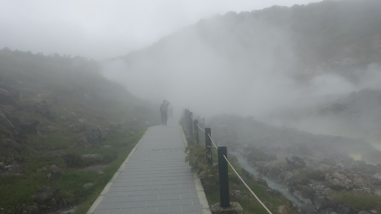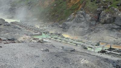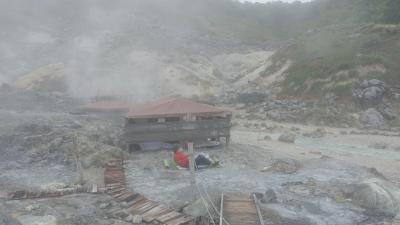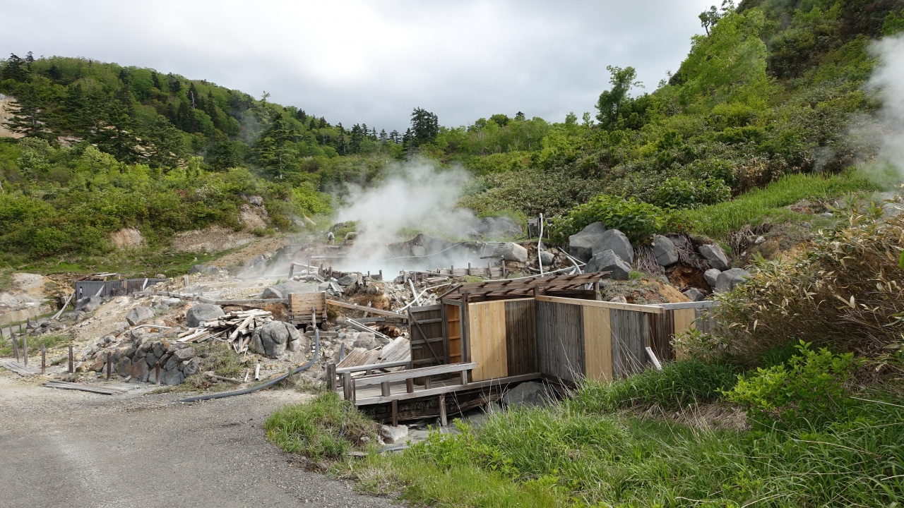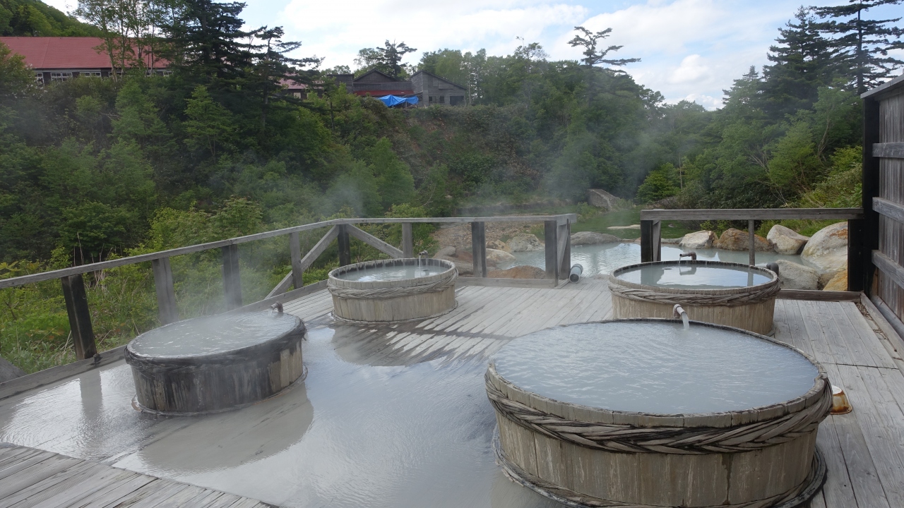 温泉は建物から少し離れた火山地帯の中に点在し、単純泉、弱酸性泉と泉質の異なる3本の源泉がある。ワイルドな野天風呂は乳白色の濁り湯で、屋根がないため解放感抜群。簡単な目隠しと床板が張られた場所には四角い桝風呂、丸い桶風呂が並んでいる。他にも岩風呂、内風呂、露天風呂、オンドルがあるらしい。- 旅行時期