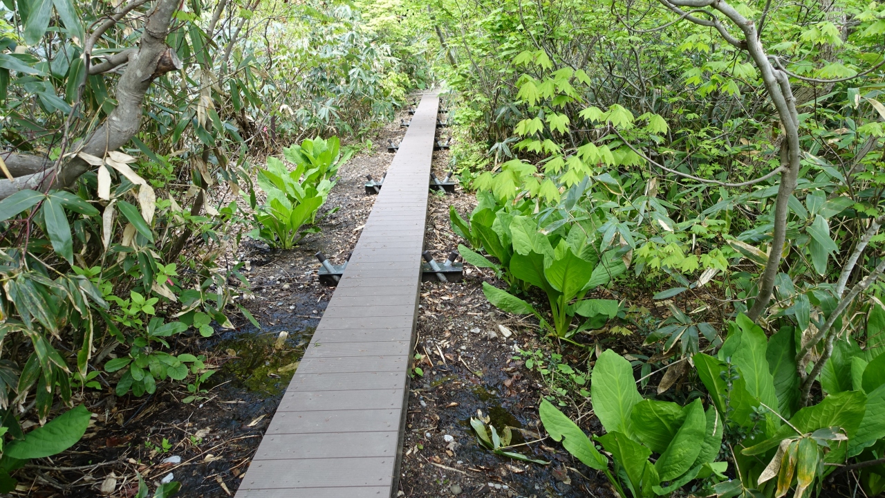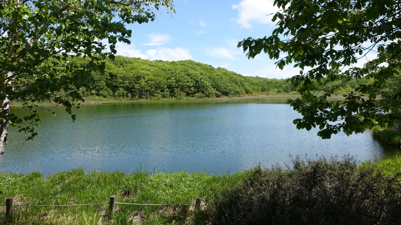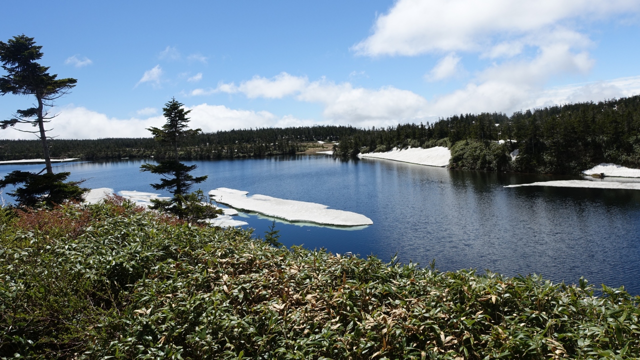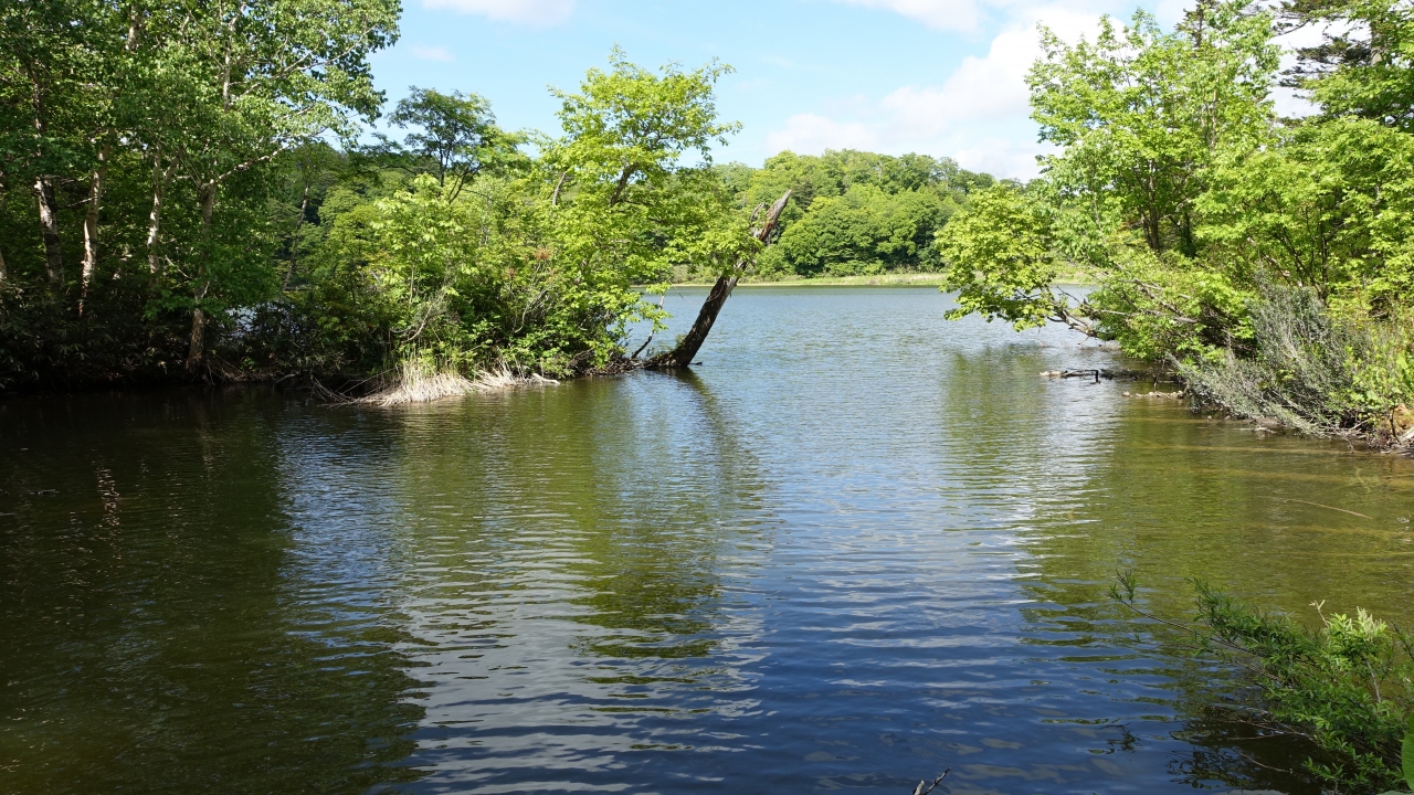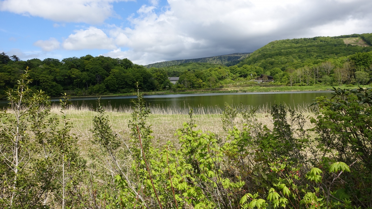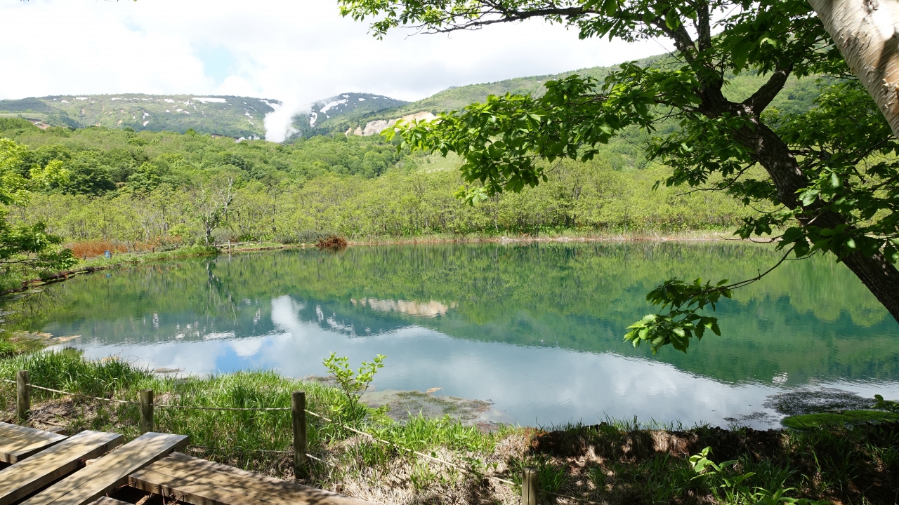大沼は八幡平アスピーテラインの秋田県側、標高950mにある美しい沼。沼を一周する自然研究路が整備され湿原と森の中の木道を沼を見ながら歩くことが出来る。初夏には水芭蕉、コバイケイソウが白い花をつけ、周囲の緑もとても鮮やか。