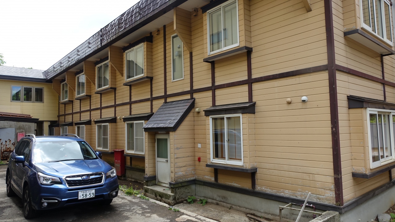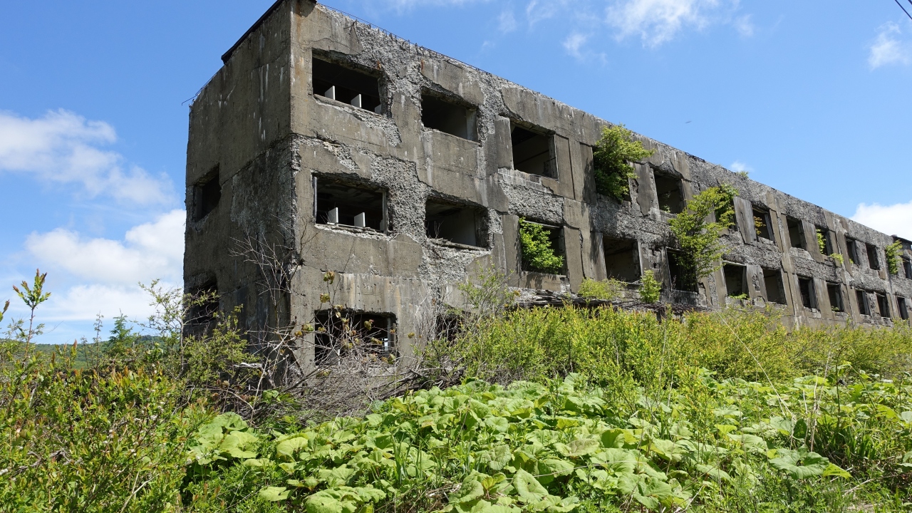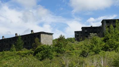 八幡平アスピーテラインの御在所ゲートを出て脇道を少し行くと、かっての松尾鉱山の廃アパート群が残っている。車で行く場合はナビを「岩手県北バス「緑が丘」停留所」に設定するとよい。