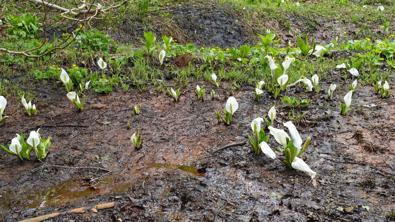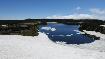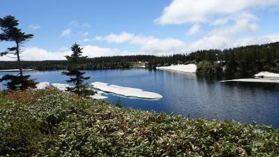 ハイキングコースは八幡平山頂からガマ沼を回るコースと、ガマ沼から八幡沼を回るコースがある。前者は1周45分、後者は1時間、両方を周遊すると2時間程度。いずれも大したアップダウンがないのでドライブの途中で下車し、気軽に歩くことが出来る。時期は6月上旬が最高。この時期には鏡池のドラゴンアイや高層湿原の水芭蕉の芽吹きがが見られ、周囲の山々も残雪の白とアオモリトドマツの緑がとても美しい。- 旅行時期