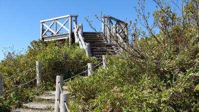 レストハウスの前のアスピーテラインを渡った先が八幡平ハイキングの登山口になっている。ここからドラゴンアイまで15分、八幡平山頂まで30分、更に八幡沼まで行く周回コースも2時間半で歩ける。- 旅行時期