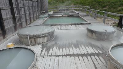 藤七温泉は蒸けの湯と並ぶ八幡平温泉郷の両横綱で「日本秘湯を守る会」に所属する。岩手県と秋田県の県境に近い標高1400mに位置し、ドラゴンアイにも近いことからシーズンには多くの宿泊客がある。八幡平の最高所に近い大自然の中の山小屋風の一軒家で、宿の横が源泉地帯になっている。源泉の上に造られた露天風呂群は、石を組み上げ周囲に渡り板を置いただけの野趣あふれる造り。周囲には硫黄臭が漂い、これまで訪れた秘湯の中でも秘湯感、ワイルド感、解放感はトップクラスだった。浴槽の下からは源泉がプクプク湧き出し、底のミネラル分豊富な泥で泥パックも出来る。